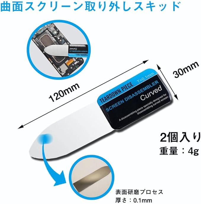 [セットサイズ] 2個セット、曲がった携帯電話スクリーン取り外しツール:厚さ0.1mm サイズ:120mm x 30mm