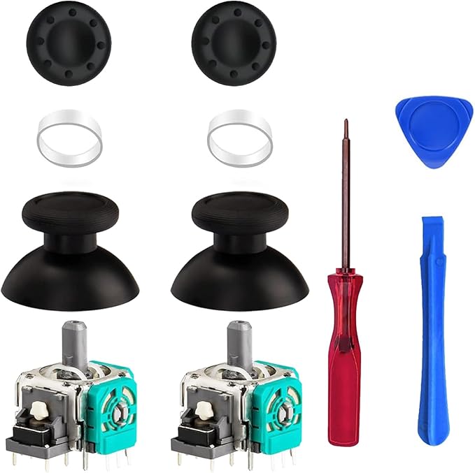 【パッケージ内容】3Dアナログスティック 2、アナログスティックキャップ 2、保護リング 2、滑り止めゲーミングサムグリップキャップ 2、プラスドライバー 1、スパガー 1、三角栓抜き 1。