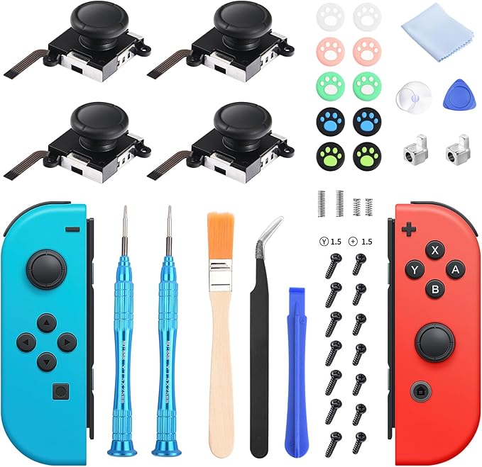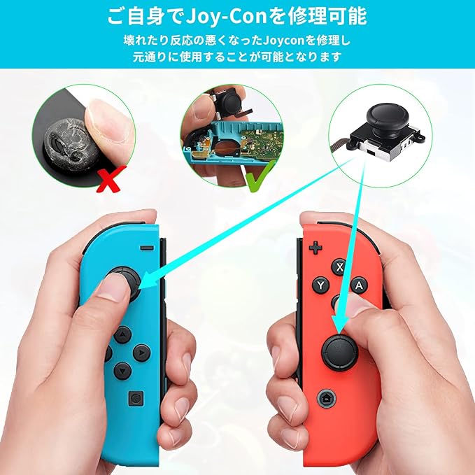 【Switch Joy-Con専用修理キット】「ジョイコンが反応しない」「スティックが勝手に動く」「ゴムカバーが取れた」「決まった方向に強く押し込まないと操作ができない」などの不具合を修理出来ます