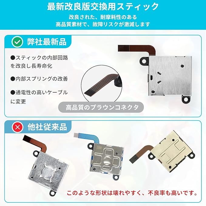 【簡単に交換可能・日本語説明書付】Youtubeにてジョイスティックの交換動画をアップロードしました。動画を参考にして頂けると、より簡単に交換可能です。YouTubeより「ジョイコン修理」を検索すると、作業動画があり