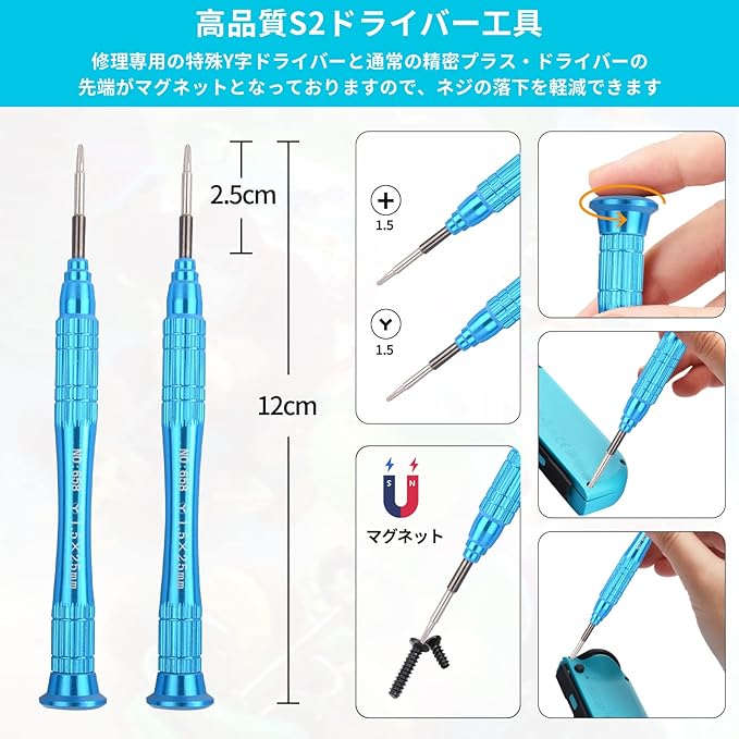 【注意事項】 ※Joy-conは精密な構造なので、修理は無理矢理はしないでください。修理完了致しましたら、Switchを起動してJoy-Conの補正をしてください。 ※Joy-Con本体は樹脂製なので、ネジを締め過ぎないようにご注意ください。 ※ネジは小さいので、紛失させる可能性があります。紛失させてしまいましたら本製品の予備ネジをご使用ください