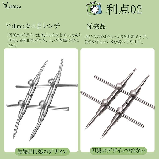 Yullmu カニ目レンチ カメラレンズスパナ レンズオープナー カメラレンズレペア工具 カメラレンズ修理 ステンレス鋼製 DSLRカメラ用
