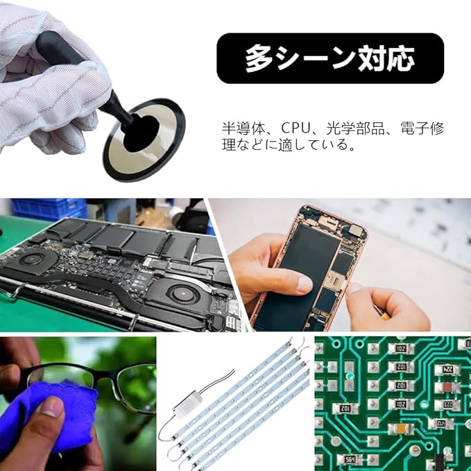 また、基板や電子部品、CPUなどの電子部品の修理やメンテナンスの際にも使用することができます。静電気防止効果により、電子部品へのダメージを防ぎます。