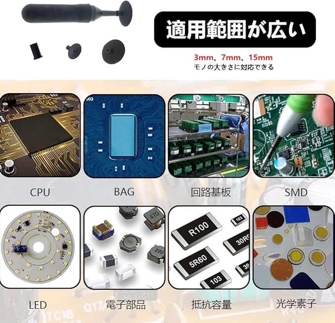 レンズ 吸盤 カメラレンズ用吸盤 メンテナンス用品 真空吸引ペン 交換可能な吸盤 3-in-1(吸盤ペン+幅3mm吸盤+幅7mm吸盤+幅15mm吸盤)電子アクセサリー 時計 アイウエア 分解 検査 レンズ修理メンテナンス