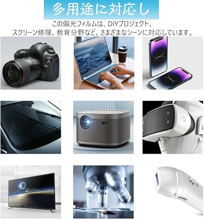 【多用途に対応し】この偏光フィルムは、DIYプロジェクト、スクリーン修理、教育分野など、さまざまなシーンに対応しています。