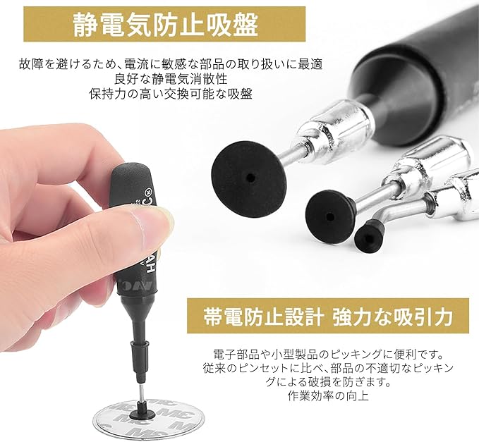 レンズ吸盤 吸引カップ4種類 吸引ペン1本 90mm バキュームワンド 精密機器用真空吸引ペン 電子部品/光学部品対応 カメラレンズICチップ専用 防静電仕様 多サイズ吸着カップ メンテナンスツール 携帯用収納ボックス同梱