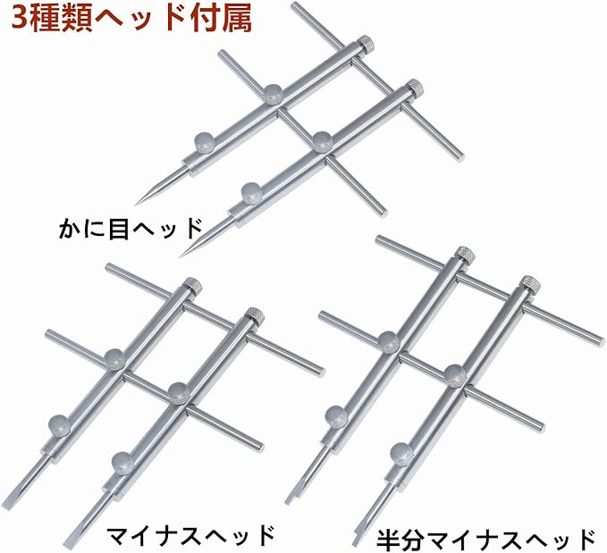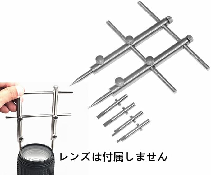 セット内容:レンズオープナー本体+ヘッド3セット、スクリュー 4本、六角レンチ 2本、ネジ 2個