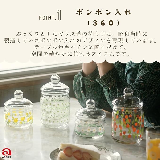 アデリア(ADERIA) 【 アデリアレトロ 花の輪 ボンボン入れ 360 化粧箱入 日本製 1933 】 保存容器 昭和 レトロ ガラス キャニスター 密閉 容器 調味料入 瓶 密閉 コーヒー豆
