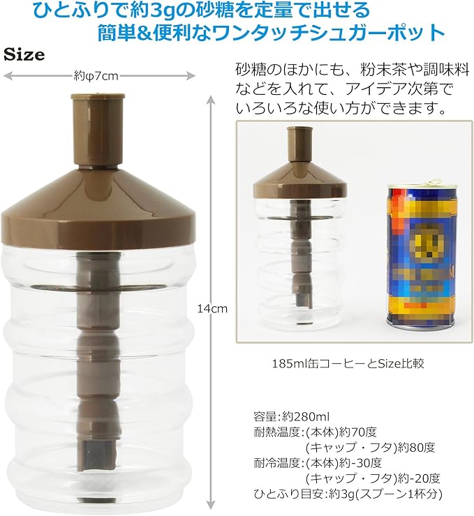 山佳化成 ワンタッチ シュガーポット 280ml 日本製 ブラウン ひとふり約3g スプーン1杯分