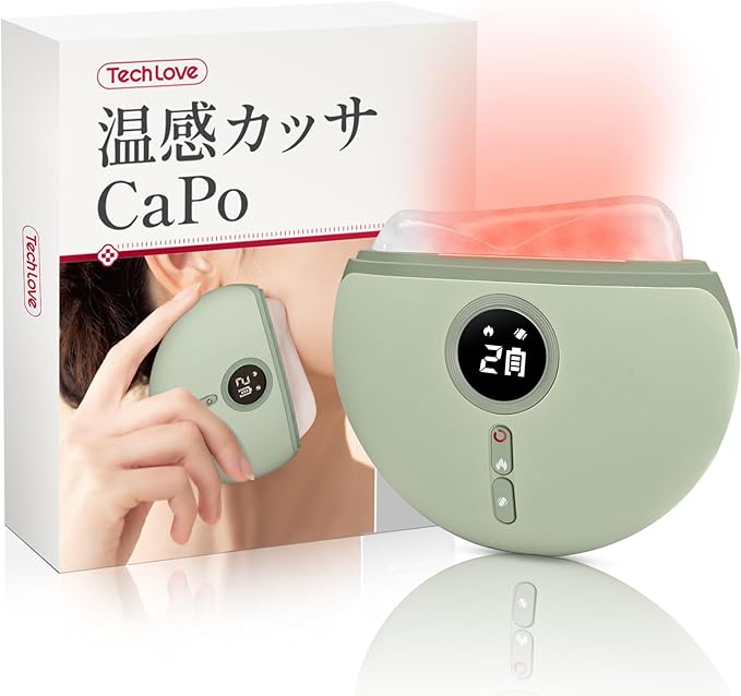 【天然石】Techlove 温感かっさCAPO かっさ プレート 顔、目元、首、など 全身兼用 電動かっさ カッサ 温熱・赤色LED・振動 美顔器 かっさ美顔器 リフト 振動浸透 美顔ローラー 顔痩せ 小顔 男女兼用 小顔ローラー Type-C充電式 誕生日プレゼント クリスマスギフト 女性 LV021R