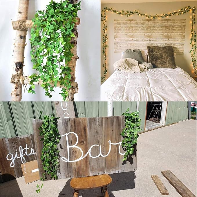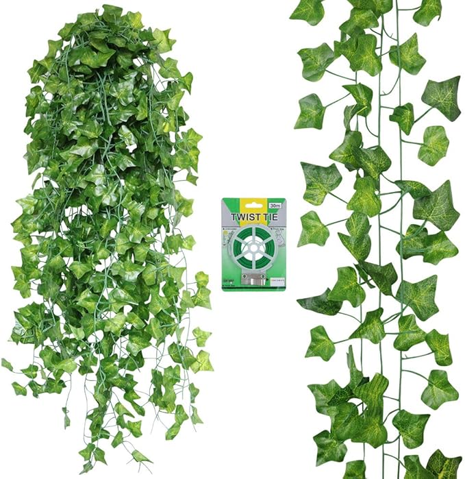 【適切なサイズ】造花アイビーは24本入り、12本づつ束になって、長さは2メートルで、1本毎に約80枚の葉っぱはびっしりと茎の左右に分布して自然の形になっています。ご必要に応じて長さをカットしても良いです。