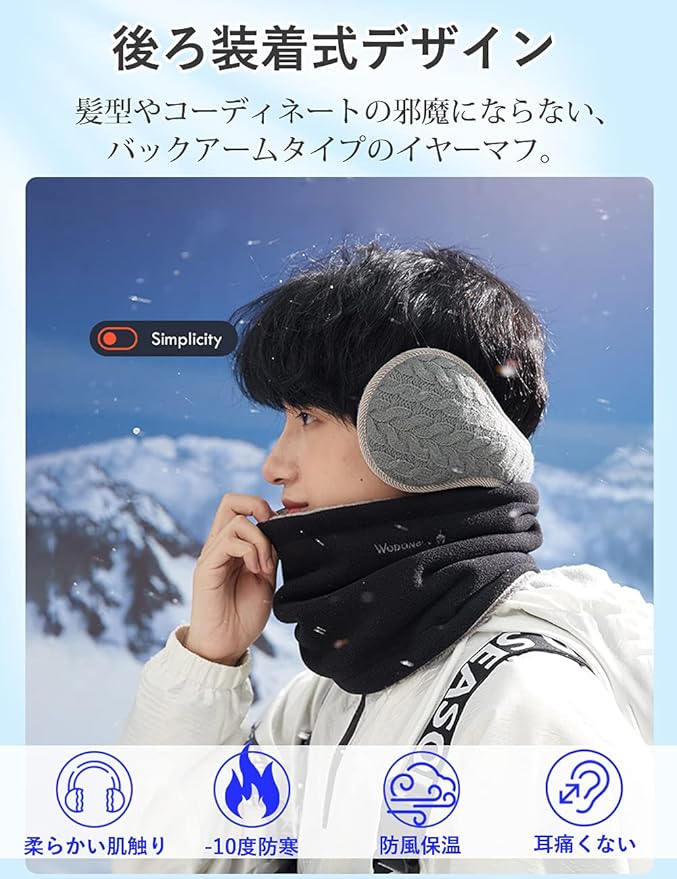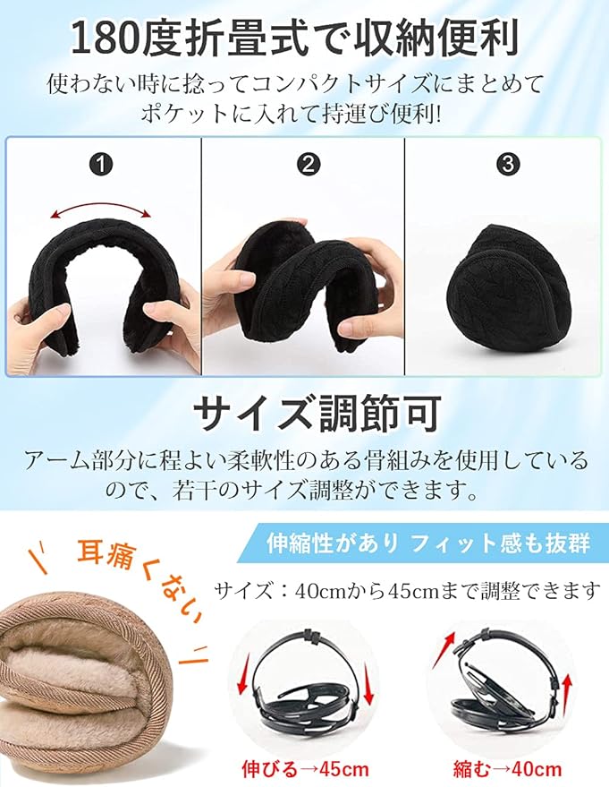 [Andeor] イヤーマフ 防寒 イヤーウォーマー 蓄熱効果アップ-10度防寒・180度折畳み・耳痛くない ・ズレにくい 耳あて ニット 耳カバー コンパクト