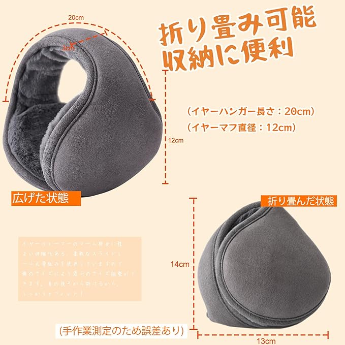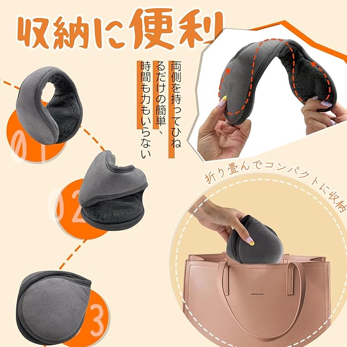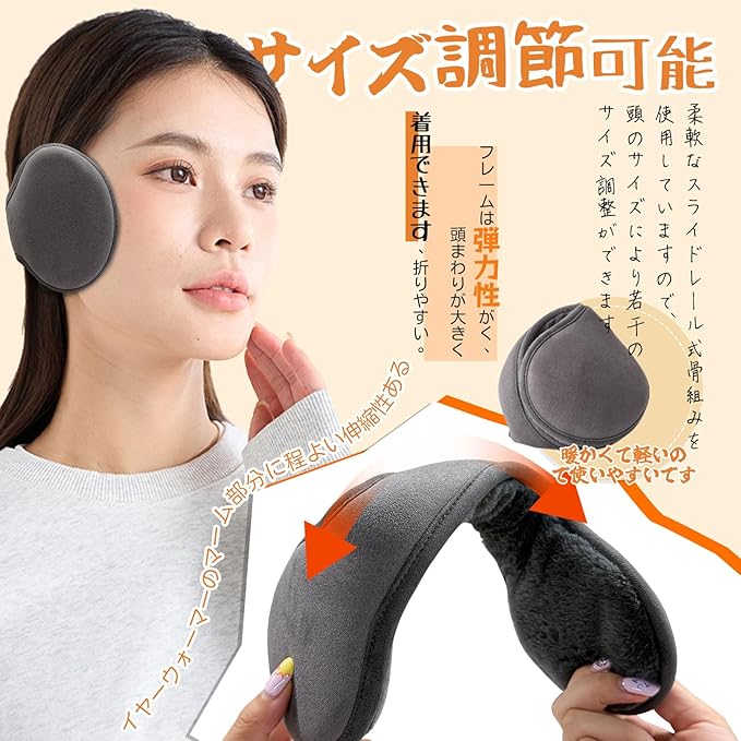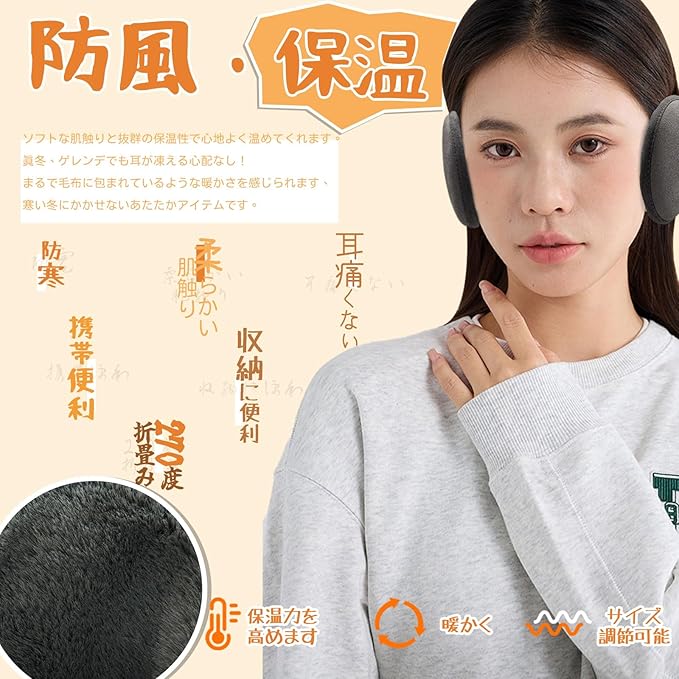 イヤーマフ 防寒 イヤーウォーマー 耳あて 後ろに掛け 裏起毛 ふわふわ 耳当て 折り畳み式 サイズ調節可能 耳カバー 耳カバー ズレにくい 携帯便利 保温性 耳痛くない 自転車 通勤 通学 収納に便利 アウトドア メンズ レディース 秋冬用