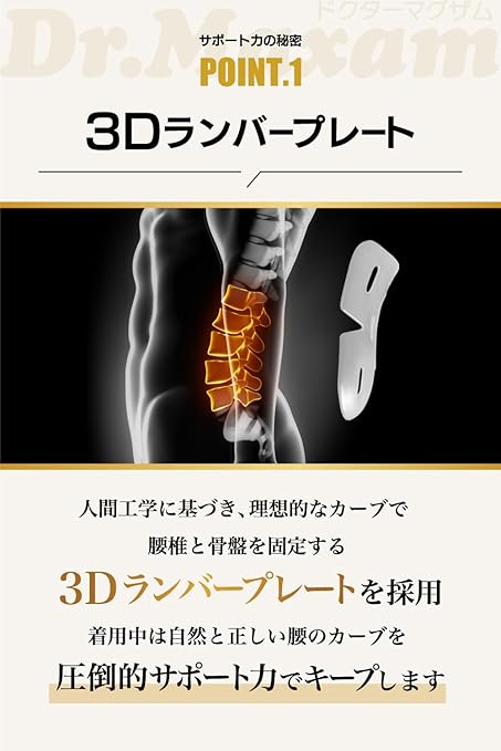 【 Dr.Maxamオリジナル3Dランバープレート採用】3Dランバープレートが腰全体を面でしっかりと支えます。子供からお年寄りまで安心してご利用頂ける設計されている腰サポートベルトです。