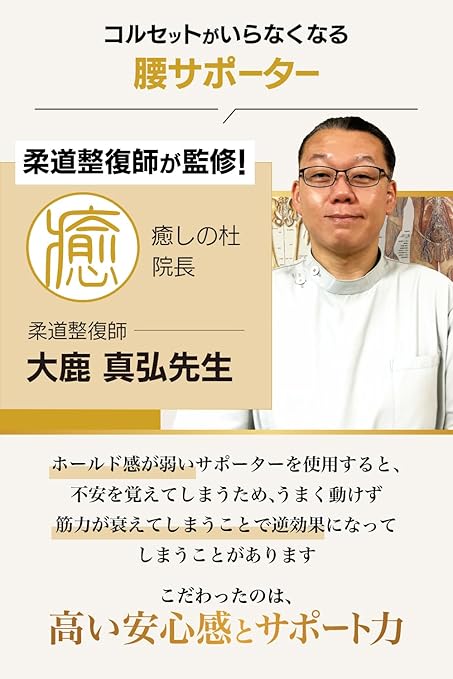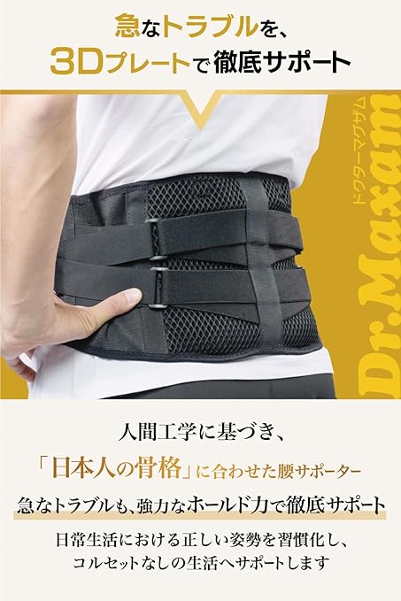 【 急なトラブルで今すぐなんとかしたい人におススメ】人体工学を基づき、人の動きに配慮した設計。柔道整復師・整体師大鹿先生監修。3Dランバープレートが腰回りをしっかり固定し、急なトラブルを徹底サポート