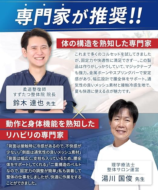 ✅【6本支柱+二重ベルトで強力固定】 4本の金属ボーンと2本のスプリングバーを内蔵。さらに両サイドの補助ベルトでしっかり締め付け、腰のぐらつきを防止。お好みの強さで安定した固定力を実現します。