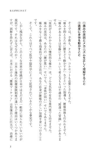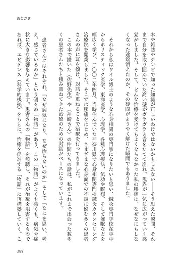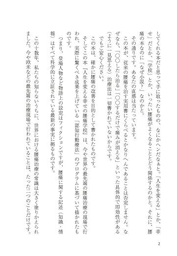 「もはや腰痛の治療には、安静も、コルセットも、薬も、手術も、腰痛体操も効かないことは科学的に実証された事実である。大事なことは、腰痛に関する誤った思い込みを消去し、正しい知識・情報を心底理解し、考え方や行動を変えることである。本書はそのための最強の教科書であると同時に、腰痛の恐れから解放してくれる希望の物語でもある」(本書「解説」より)