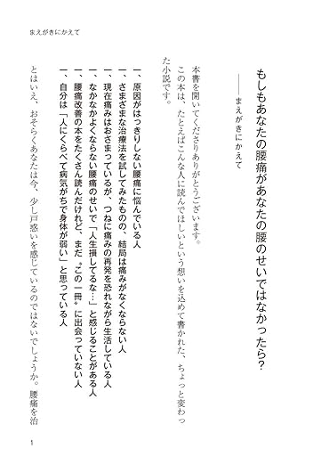 物語を読み進めていくうちにあなたの脳に刻まれている間違った常識が覆される、世界で初めて【腰痛の改善】を目的に書かれた真実のストーリー。