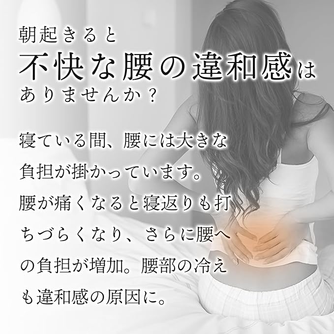 お休み中に腰の違和感を感じている方、腰回りの隙間を埋めて寝返りサポート! 中綿生地で冷えから守るクッション型サポーターです。床ずれ対策にも◎