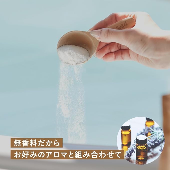 【効果的な使い方】お風呂にまんべんなく振り入れ、しっかりとかき混ぜてください。無香料なので、お好きなアロマと一緒に使っていただくこともおススメです。※本商品は植物由来の成分を使用しているため、だまが生じることがありますが、品質には問題ございません。
