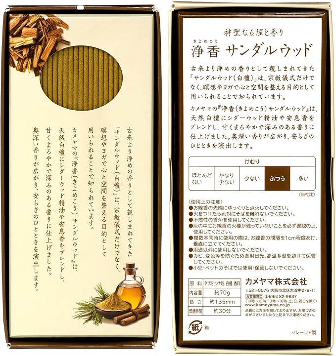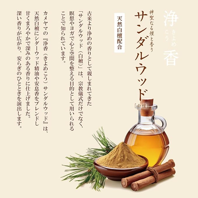 カメヤマ 浄香 サンダルウッド 約70g 約160本 お香 浄化 リラックス リフレッシュ