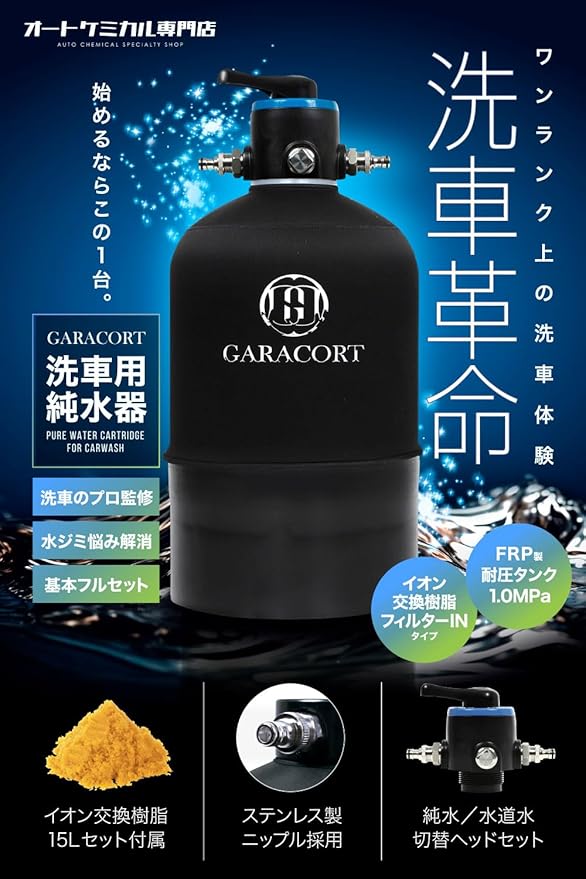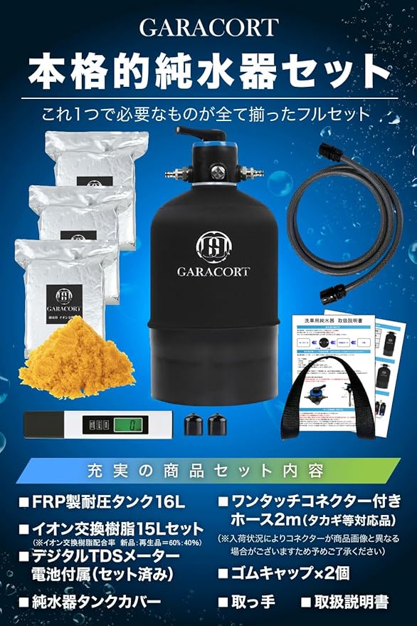ガラコート 純水器 洗車用 16L FRP耐圧タンク 切替ヘッド TDSメーター イオン交換樹脂セット 専用カバー付き 車 バイク 水垢 イオンデポジット ウォータースポット対策 国内組立・検査済み 【1年間保証】