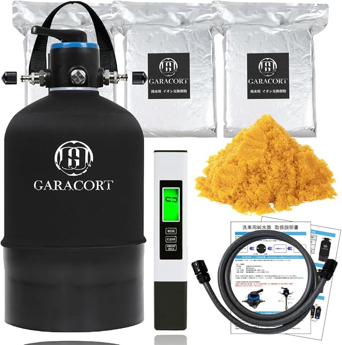 ✅ セット内容(届いてすぐ使えるフルセット) ・FRP耐圧タンク16L ・切替ヘッド └ FILTER(純水) / BYPASS(水道水) / FAST RINSE(高速すすぎ) / BACK WASH(逆洗)搭載 ・イオン交換樹脂15L(新品60%:再生40%) └ 初心者でも樹脂交換しやすい「充填用ロート」付き ・2mコネクター付きホース(タカギ等の散水ノズルにも対応) ・デジタルTDSメーター(電池セット済) └ 純水の数値をすぐ確認可能 ・純水器持ち運び用取っ手 ・ゴムキャップ 2(保管時や移動時に便利) ・取扱説明書(初心者でも分かりやすい解説付き)