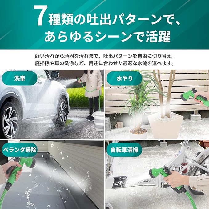 ✅【ノズルを回すだけでモード切替】 洗車モードやアウトドアモードなど、ノズルを回すだけで簡単にモードを切り替え可能。どんな汚れもこれ一台でしっかり対応し、細かい作業も大面積もラクラク!