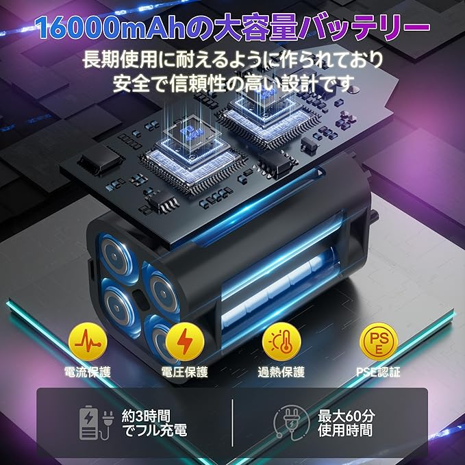 【16,000mAh級パワー|BMS保護付きハイパワーバッテリー搭載】4セル高出力構成(4,000mAh 6直列/16.8V)により、一般的な3.7V仕様のブロワーを大きく超える16,000mAhクラスのパワーを実現。高電圧駆動により風力低下を防ぎ、常に安定したハイパワー送風を可能にします。さらにBMSスマート制御システムが過充電・過放電・過熱を防止し、長時間作業でも安全性と信頼性を確保。バッテリーはUN38.3安全基準に適合し、MSDS(化学物質安全データシート)対応で安心してご使用いただけます。