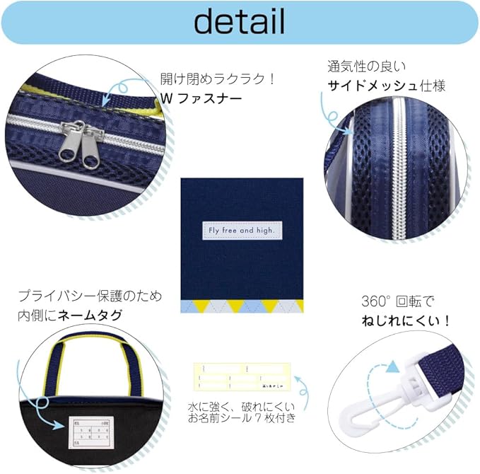 ・ネームラベル付き(個人情報に配慮してバッグの内側に縫い付け)。