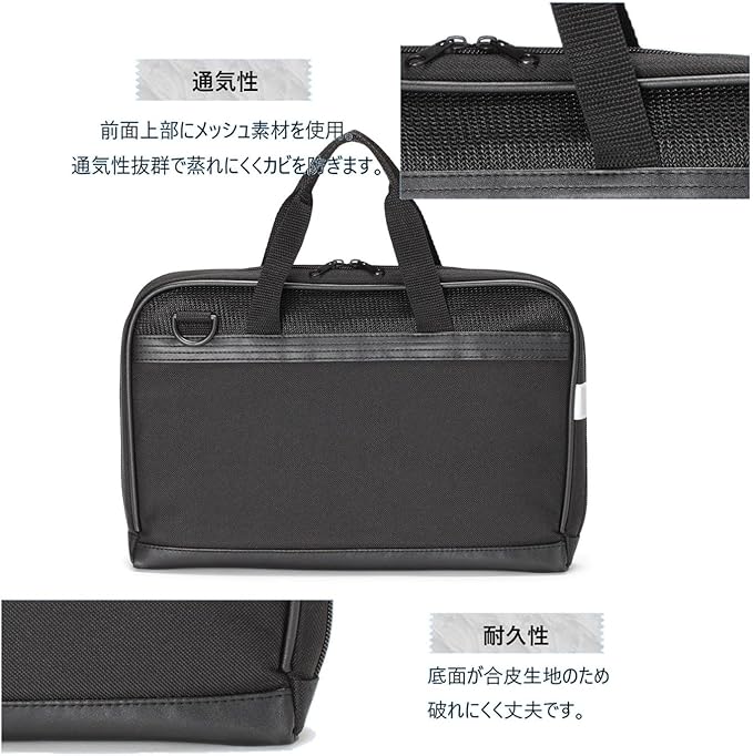 前面上部がメッシュ素材になっているので通気性がよく、カビを防いで清潔に使えます。