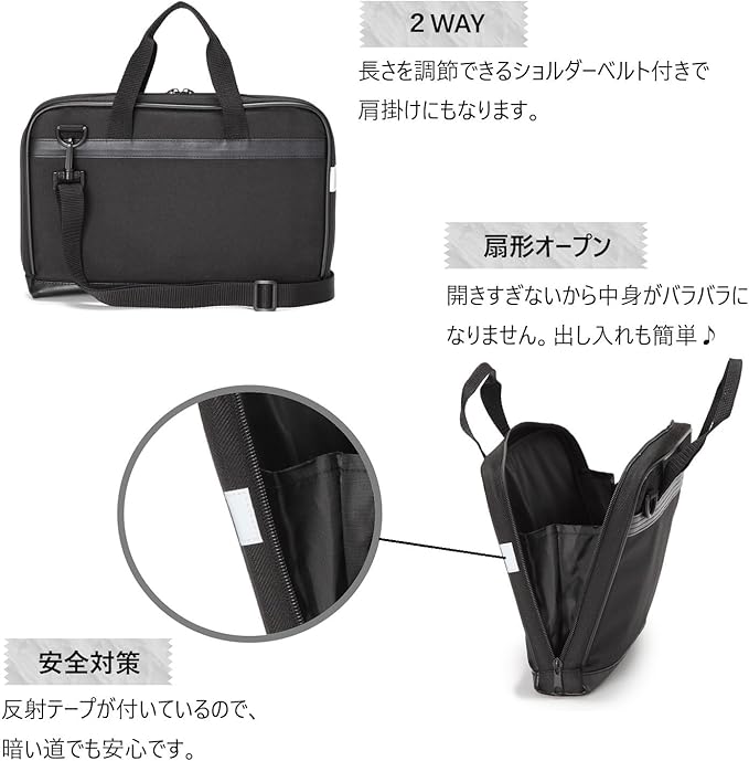 長さ調節ができるショルダーベルト付きで、肩掛けにもできます。