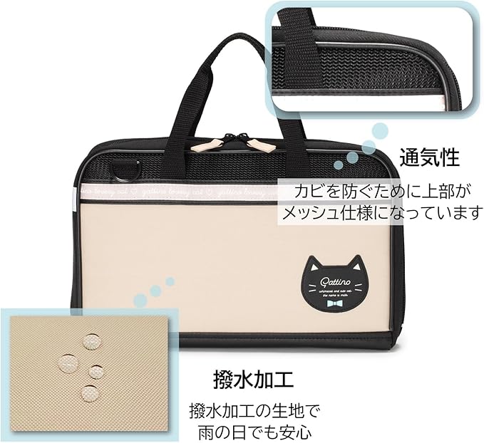 汚れにくい撥水加工生地で、前面上部には通気性のあるメッシュ素材を使用。