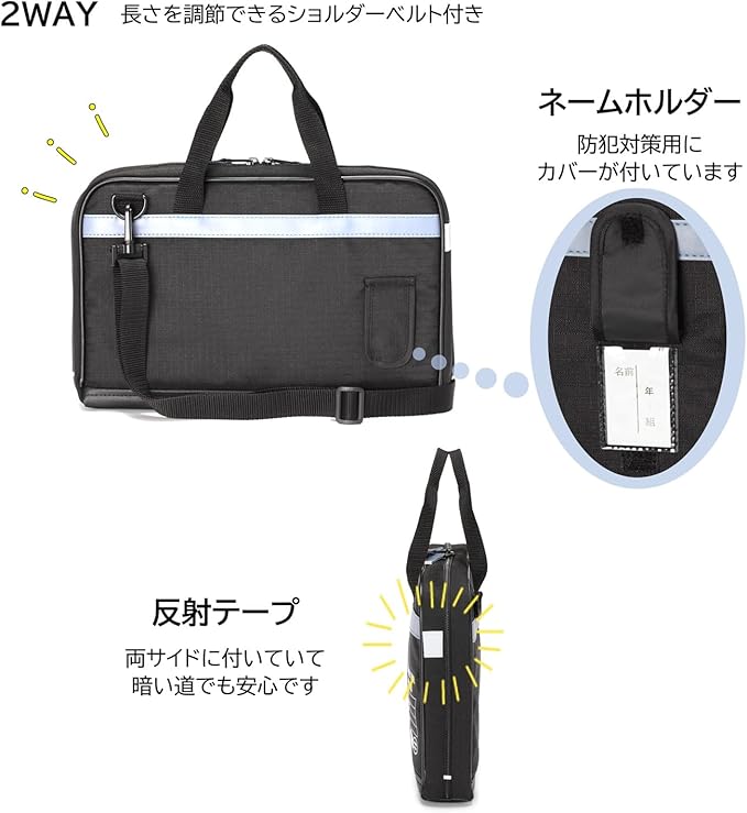 両サイドに光を反射するテープ付きで夜道でも目立ちます。