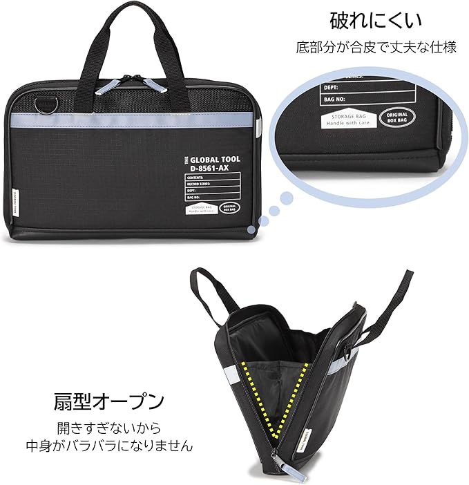 ファスナーを端まであけても開きすぎないので、中身がバラバラになる心配がありません。