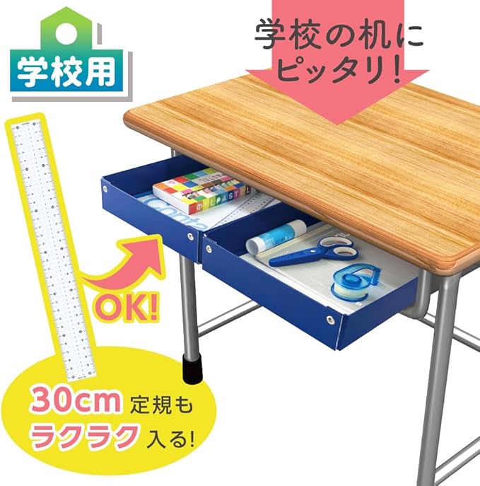 箱本体と蓋を並べて学校引き出しとして使用できます。