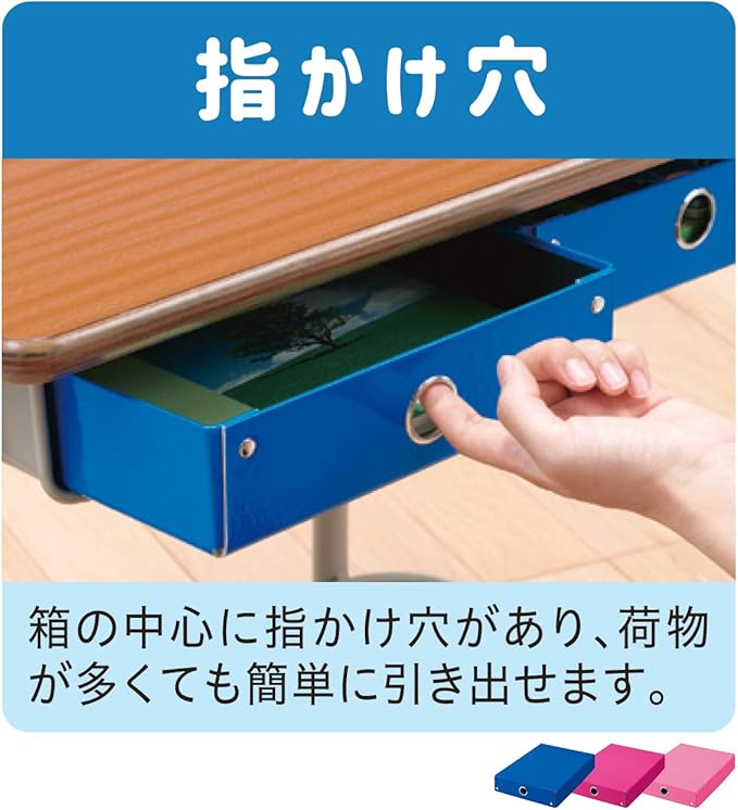 箱の中心に指かけ穴があり、荷物が多くても簡単に引き出せます。