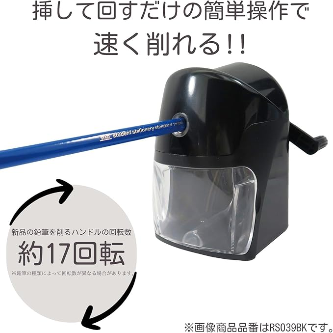 新品の鉛筆でも、約17回転でラクラク削れる!
