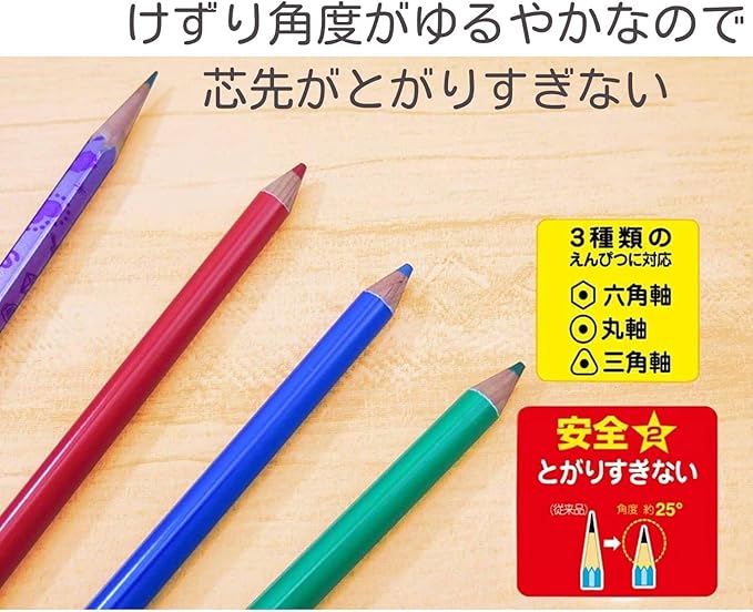 鉛筆が尖りすぎないように設定(削り角度約25度)されているので安全◎