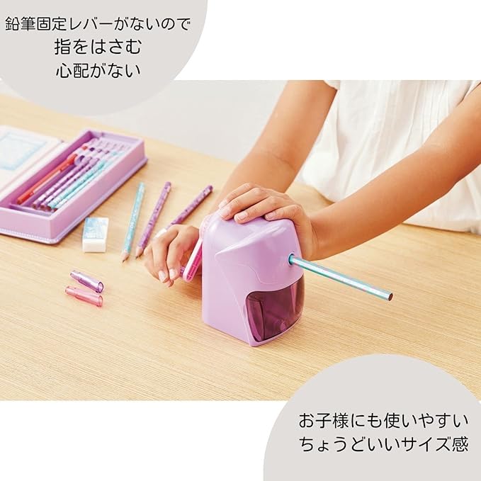 鉛筆の固定レバーが無い安全タイプの卓上鉛筆削り!