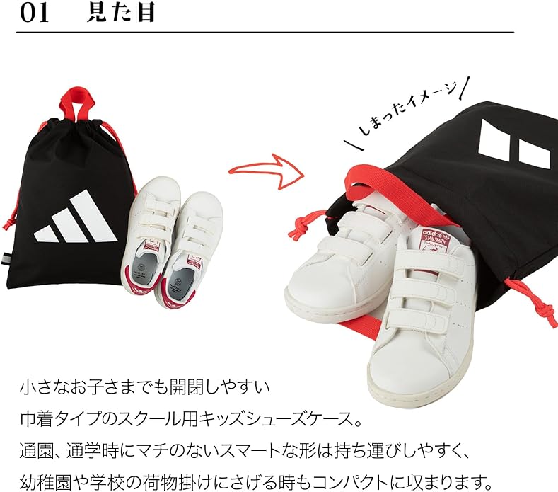 出し入れしやすい巾着タイプで上履きや体育館シューズ収納におすすめ