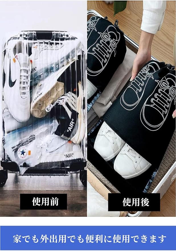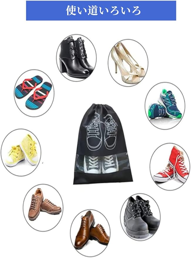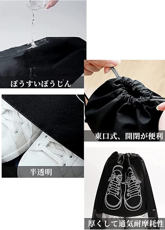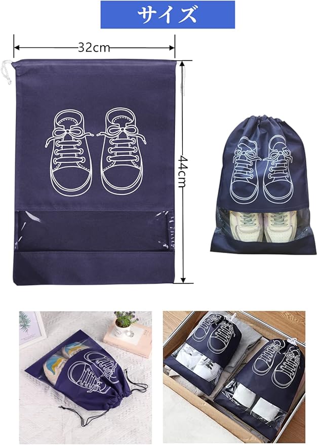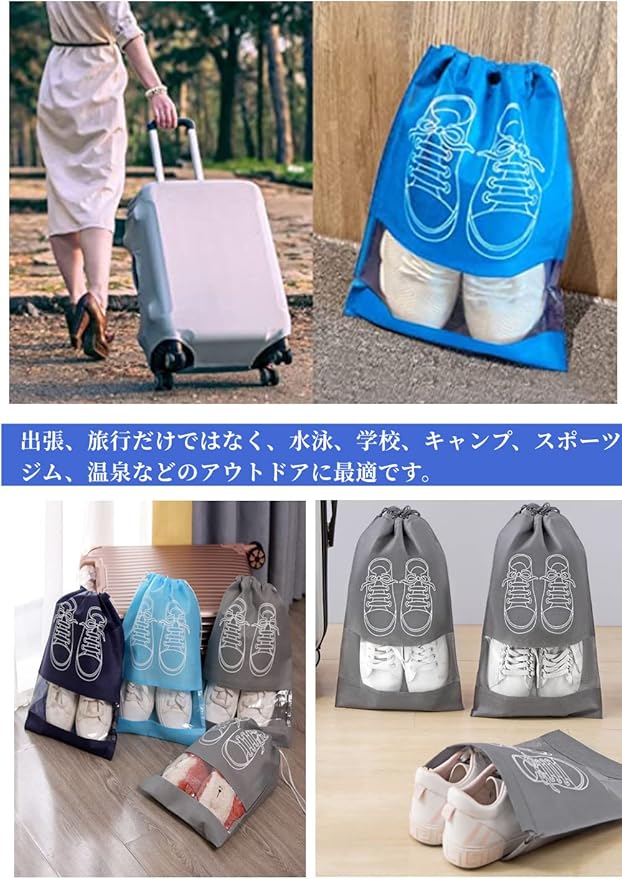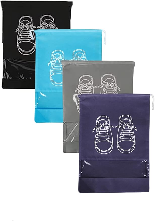 【パッケージ内容】シューズバッグ 4枚セット、色:ブラック、空色、紺、ライトグレー 、大サイズ: 約42cm 28cm