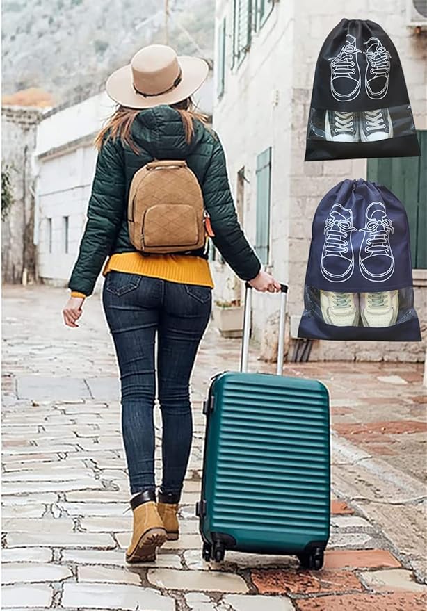 YINKE シューズケース シューズバッグ 4枚セット巾着 靴収納 防水 防塵 シューズ袋 不織布 男女兼用 旅行 家用 出張 スポーツ 持ち運び便利 (図案)