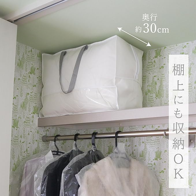 ●クローゼットへの出し入れに便利な持ち手付の 収納袋です