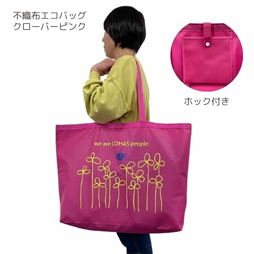 オリタニ クリーニング用 ランドリーバック エコバック 大 LOHAS BAG 不織布 クローバー ピンク