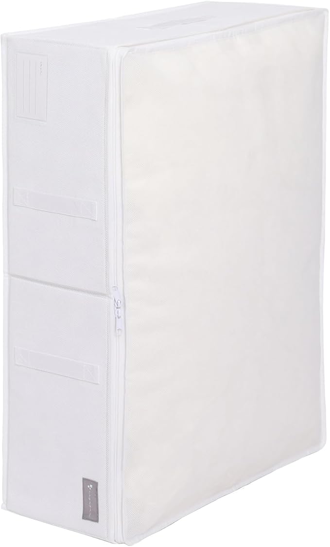 【通気性の良い不織布製布団収納ケース/白色でスッキリとまとまる】:通気性の良い不織布製の寝具用収納ケース。オフシーズンの布団をほこりから守り保管。収納スペースに合わせてさまざまな組み合わせで使用でき、白色でスッキリとまとまる。