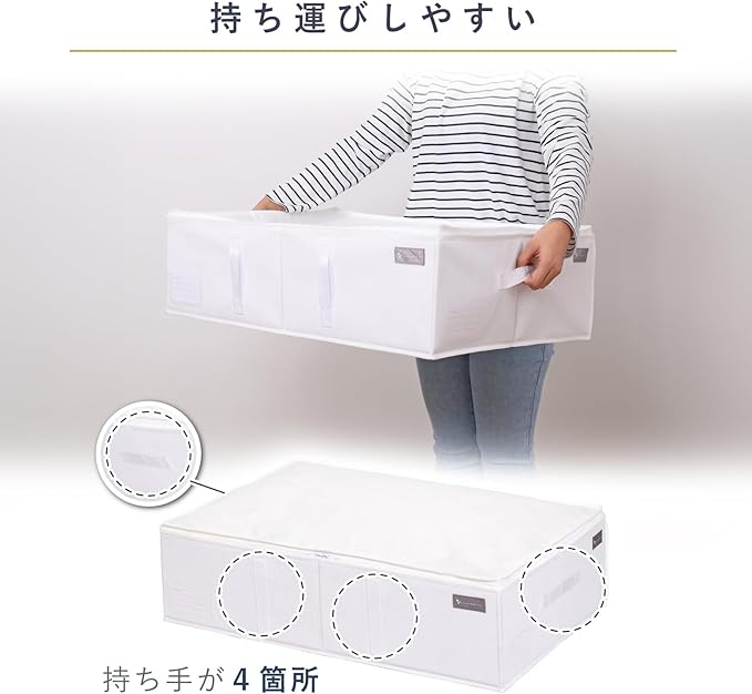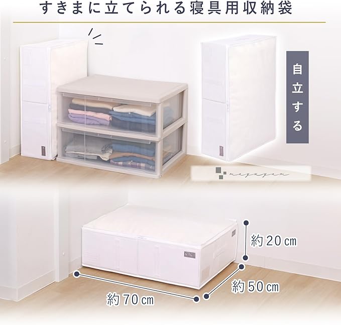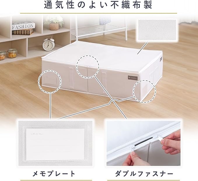 ●通気性の良い不織布製の寝具用収納ケース。オフシーズンの布団をほこりから守り保管。