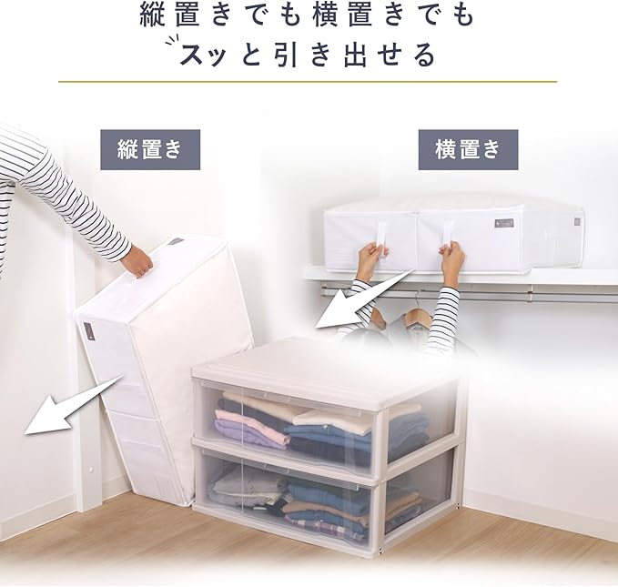通気性が良くホコリを通しにくい生地のため、衣類や寝具の収納に適しています。