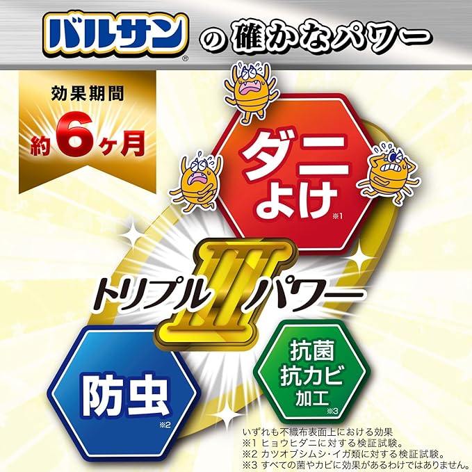●ピレスロイド系防虫ダニよけ剤、有機系抗菌抗カビ剤を使用しております。