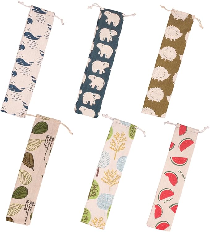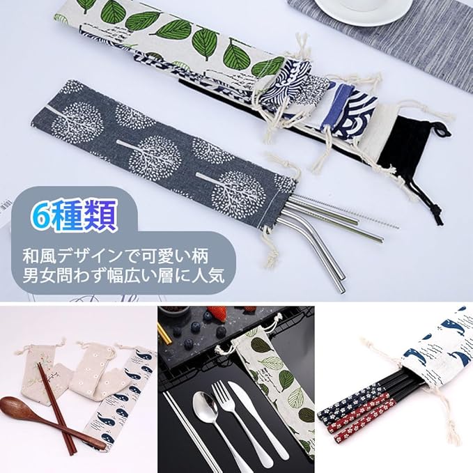 サムコス ストロー収納ポーチ 箸袋 6種類セット 布製 綿麻素材 おしゃれ かわいい エコフレンドリー 飲食店仕様 カトラリー収納 携帯用カトラリーケース 洗える巾着袋 工具入れ 食卓用 業務用 飲食店 トラベルサイズ 和風デザイン お弁当に最適 マルチカラー